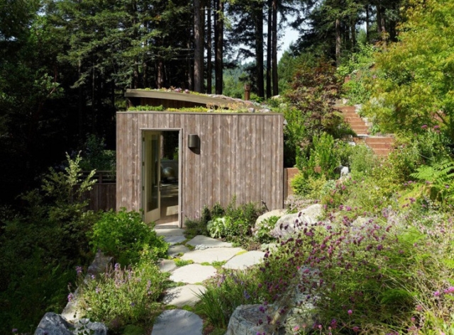 Obe kolibe su okružene sa bujnim zelenilom. Iako je veći deo zelenila već bio prisutan na obronku brda, pejzažne arhitekte iz biroa Jori Hook Landscape Architecture su odgovorne za uklapanje koliba u zeleno okruženje. Ovo je delimično postignuto dodovanjem krovne bašte nižoj strukturi, tako da ona praktično nestaje u padini.