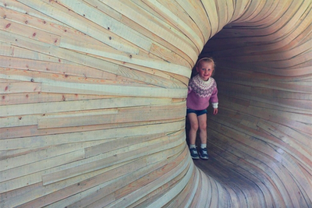 Južni zid je obložen sa netretiranim arišom, koji će vremenom posiveti i uklopiti se sa šumom. Ali, najizraženija karakteristika je fantastičan ulazni tunel napravljen od strugane borovine, koji poziva odrasle i decu podjednako u prvi i jedini van-mrežni hotel u Bergenu.