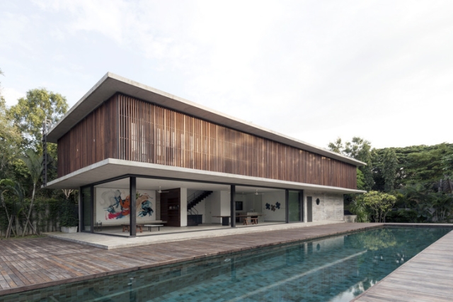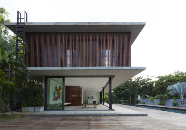 Odluka da se koristi prednapregnut beton u ovoj porodičnoj kući je omaž obimnijim komercijalnim objektima na Tajlandu. Tehnika omogućava stvaranje velikih otvorenih prostora unutar kuće, naročito na nivou prizemlja.