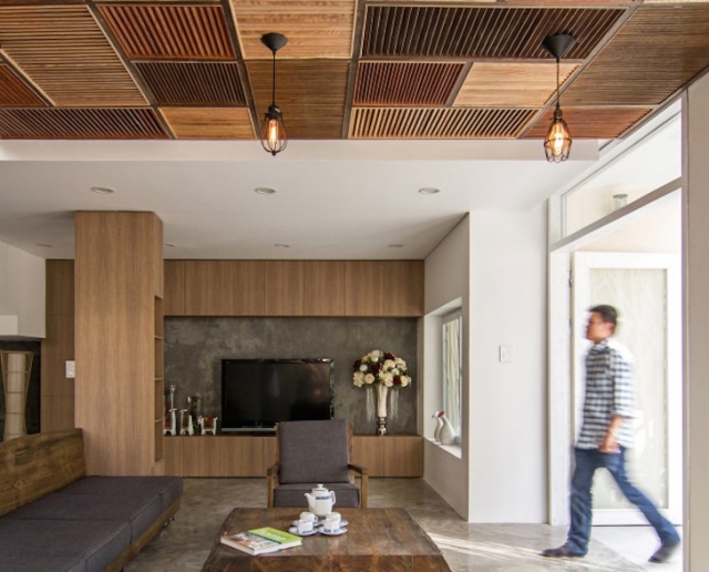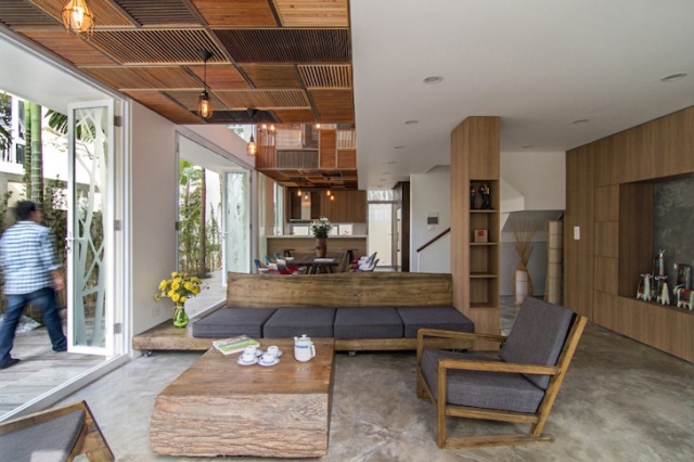 Kuća je smeštena u predeo divnih starih stabala u gradskom području Ekopark u Vijetnamu. Crpeći inspiraciju iz okolne urbane šume, arhitekte su obložile enterijer kuće EPV sa prelepim teksturisanim drvenim materijalom, uključujući i privlačni pačvork od drvenih žaluzina koji uokviruju centralno smeštenu trpezariju.