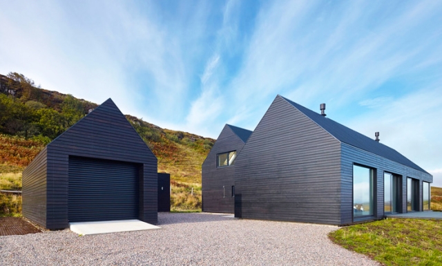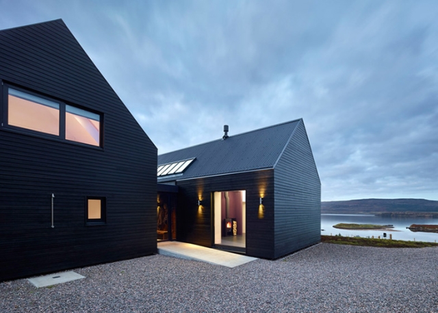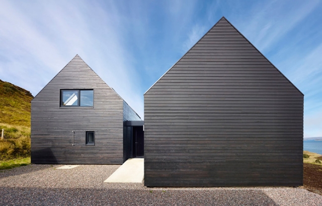 Ušuškana na povišenoj poljoprivrednoj parceli na ostrvu Skaj u Škotskoj, kuća „Colbost“ je zanimljiva kolekcija geometrijskih crnih objekata. Inspirisane starom, crnom šupom koja se nalazi u blizini, četiri strukture koje čine kuću su projektovane od strane biroa Dualchas Architects kako bi se pružilo porodici ugodan dom koji nemetljivo stoji u povišenom primorskom pejzažu koji ga okružuje.
