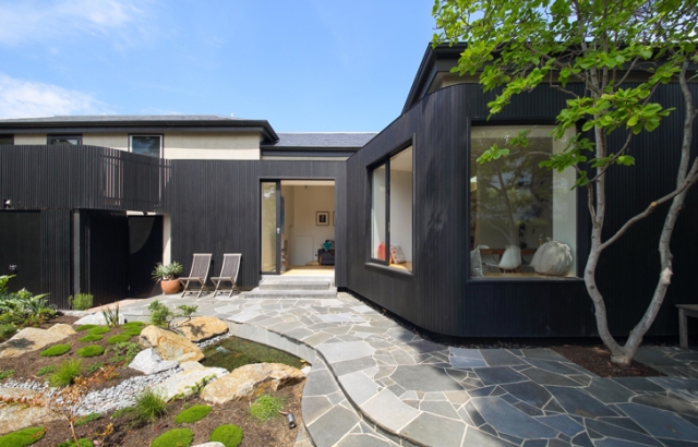 Inspirisana postojećom arhitekturom kuće, novi dodatak reaguje i reintrepretira viktorijanski senzibilitet sa modernim oblinama. Tamni zakrivljeni drveni zid ujedinjuje stare i nove prostore, stvarajući savremenu fasadu.