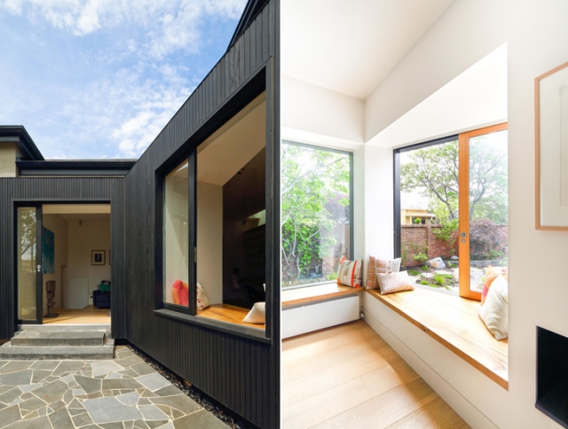 Smeštena na ugaonoj parceli, nova kuća spaja nekoliko postojećih prostora u jedan dom, uključujući garažu i zaseban apartman. Novi krov se proteže preko ovih prostora, viktorijanske kuće i novih proširenja, ujedinjujući jedinstveno prebivalište. Drveni zid takođe deluje kao element harmonizacije, produžujući fasadu i dosežući do dvorišta i ograde.