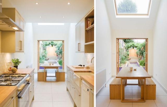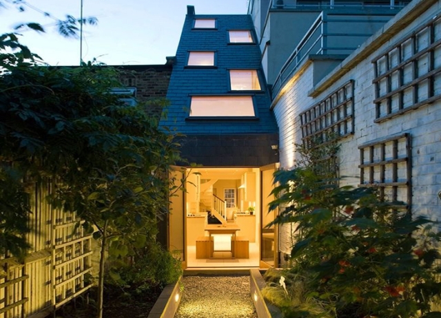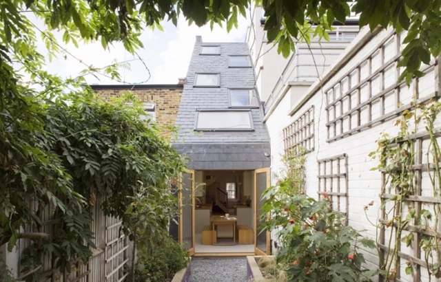Londonski arhitektonski biro alma-nac je produžio postojeću kuću u južnom Londonu, stvarajući 2,3 metar širok terasasti dom koji deluje više prostran i pun svetlosti od originalne uske kuće. Produžetak uske kuće uvodi dovoljno prostora za smeštaj novog trpezarijskog prostora u prizemlju, dodatnu spavaću sobu na prvom spratu i radnu sobu na drugom spratu.