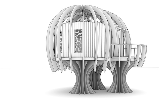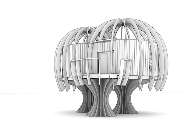Suočeni sa dodatnim izazovima izgradnje kućice na drvetu koji bi mogla lako da se razmontira ukoliko je to potrebno, a da opet bude dovoljno robusna i čvrsta za trajnu spoljašnju upotrebu, projektanti su odabrali da kućice stoji samostalno van stabla drveta.