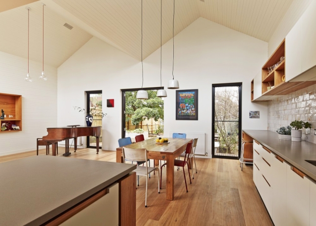 Novi prostori pružaju otvorenu društvenu oblast koja obuhvata stambene površine i kuhinju, tako da porodica može da provodi što je više moguće vremena zajedno. Prednji deo kuće je ostao netaknut, što mu omogućava da se uklopi sa komšilukom.