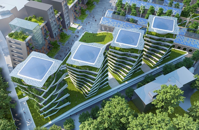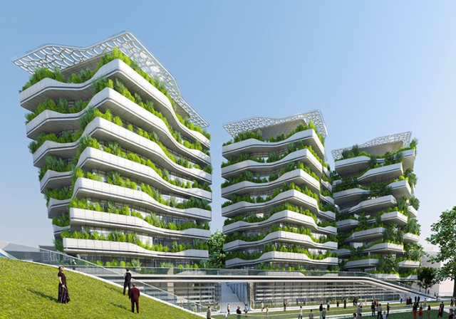 Fasade zgrada će biti pokrivene u vertikalnim baštama i balkonima, koje će obezbediti besplatni, organske jestive biljke stanarima. Umesto da budu postavljene pored zgrada, voćke i bašte postaju deo samih zgrada.