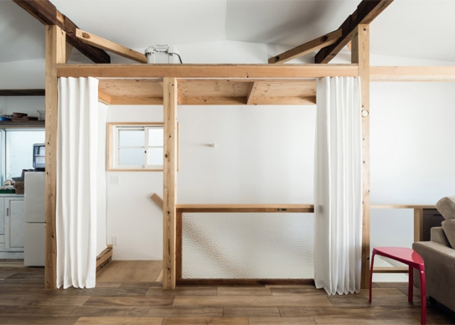 Japanski arhitekta Kacuteru Matumura je renovirao unutrašnjost stare kuće u Osaki i transformisao je u dvospratnu rezidencuju koja koristi zavese kao zidove. On je razrušio unutrašnjost zgrade, koristio reciklirane materijale za redekoraciju, i postavio fleksibilne particije zavesa koje se pomeraju sa svakim povetarcem.
