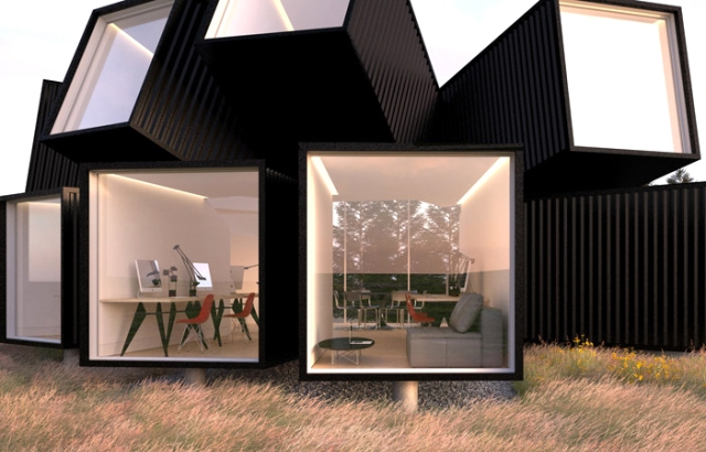Iako digitalni renderi prikazuju predloženu kancelarijsku zgradu u travnatom proplanku okružen šumom, arhitekta Vitaker kaže da bi zgrada mogla biti montirana bilo gde.