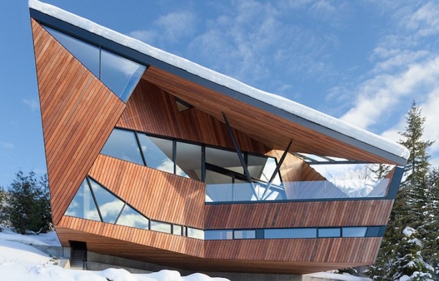 Smeštena na snežnoj severozapadnoj padini u Britanskoj Kolumbiji, planinska koliba obložena drvetom pruža predivne panoramske poglede na dolinu Vistler. Njeni oštri uglovi i dramatično nagnuti krov omogućavaju snegu da lako sklizne sa njega, sprečavajući nagomilavanje snežnog prekrivača.