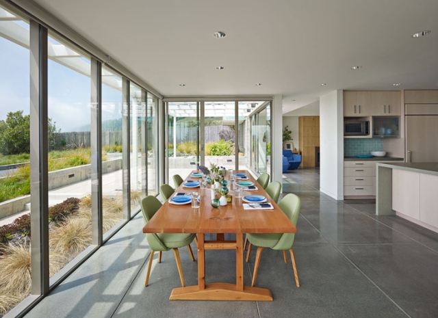 Kuća na Stinson plaži, delo arhitektonskog biroa Wnuk Spurlock Architecture, je pametno, održivo prebivalište ušuškano u planinskom pejzažu obale severno od San Franciska, SAD.