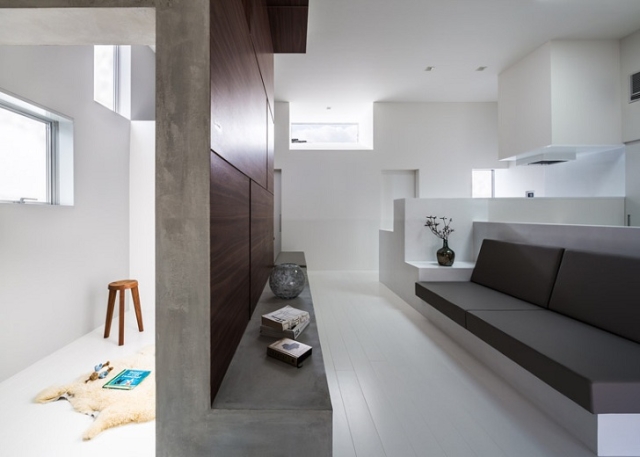 Arhitekta Kimura je stvorio niz prostora obavijenih sa minimalističkim fasadama koje štite privatnost porodice. On je integrisao nameštaj u arhitekturu, sa malim nišama koje funkcionišu kao klupe.