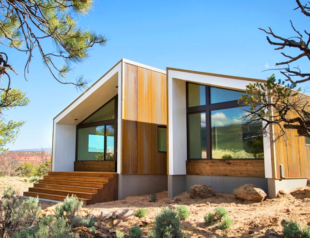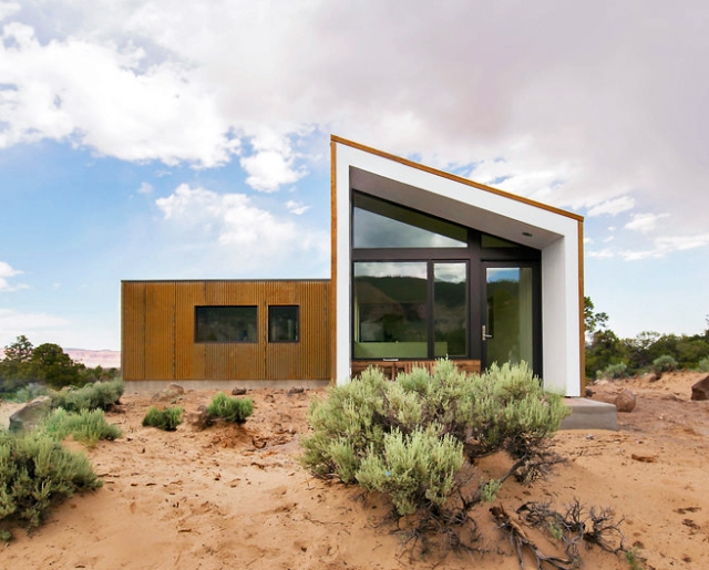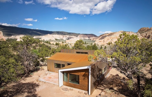 Materijali lokalnog porekla i izrade oblažu ovaj udaljeni pustinjski dom smešten na granici sa Nacionalnim parkom Kapitol Rif u Juti, SAD. Pokriven sa valovitim Korten (Corten) čelikom, ova skupina malih ugaonih zgrada je projektovan od strane biroa Imbue Design tako da evocira pustinjski prašljav i robustan karakter.