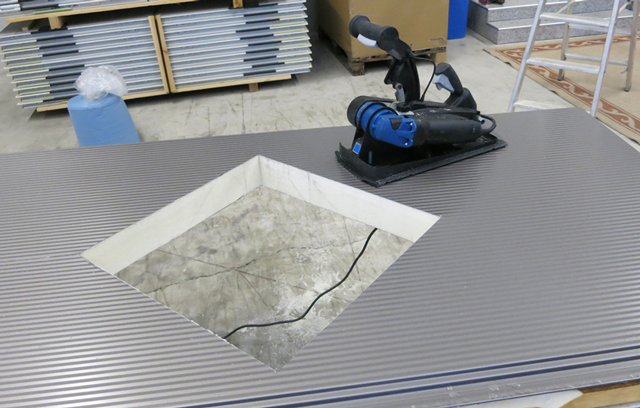 Ugaone brusilice su verovatno najpopularniji alat za sve namene u Srbiji! Ipak, za ovu namenu su i najgori izbor: toplota od sečenja uništava površinsku zaštitu na spoljnom sloju panela, a varnice od sečenja površinskog sloja izazivaju topljenje penastog jezgra panela. Drugim rečima, u zoni oko otvora koja je i najosetljivija postojaće problem i sa spoljnom zaštitom panela i sa toplotnom izolacijom zbog istopljene pene unutar panela.