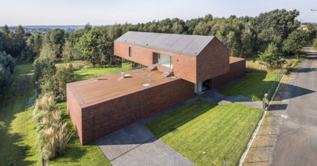 Neobična kuća-bašta, projektovana od strane arhitektonskog biroa KWK Promes, uvodi travnati vrt u životni prostor svojih stanara. Izgrađena u Katovicama u Poljskoj, kuća se sastoji od dva pravougaona volumena postavljena pod pravim uglom, stvarajući natkrivenu baštu ispod. Kuća je obložena u ciglu i klizne staklene zidove i spaja baštu sa unutrašnjim prostorom, omogućavajući stanarima da gaze po travi dok se šetaju po svojoj trpezariji.