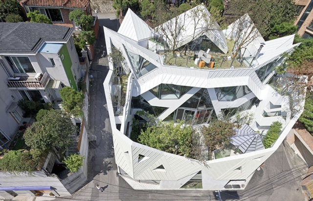 Kuća „Hwa Hun“ u Seulu cveta nalik cvetu, usputno izlažući brdoviti zeleni krov koji izgleda kao produžetak okolne prirode. Arhitektonski biro Iroje KHM Architects je projektovao kuću tako da se harmonizuje sa prirodnim uslovima na parceli i omogući svojim stanarima da se osećaju povezani sa prirodom na direktan način.