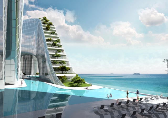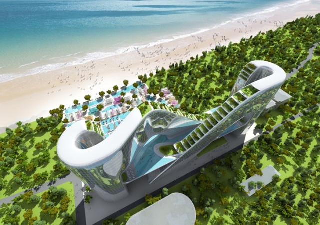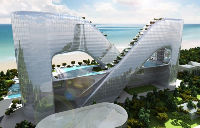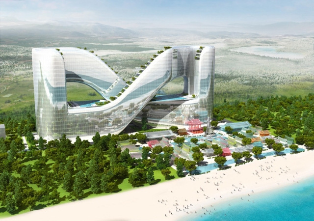 Projekat hotela sa zelenim terasama će se uvijati u kaskadnim krivinama koje formiraju njegov oblik beskonačnosti. Projektovan za potrebe Zimskih olimpijskih igara, turistički hotel će biti smešten na plaži, pružajući gostima poglede na vodu i planine.