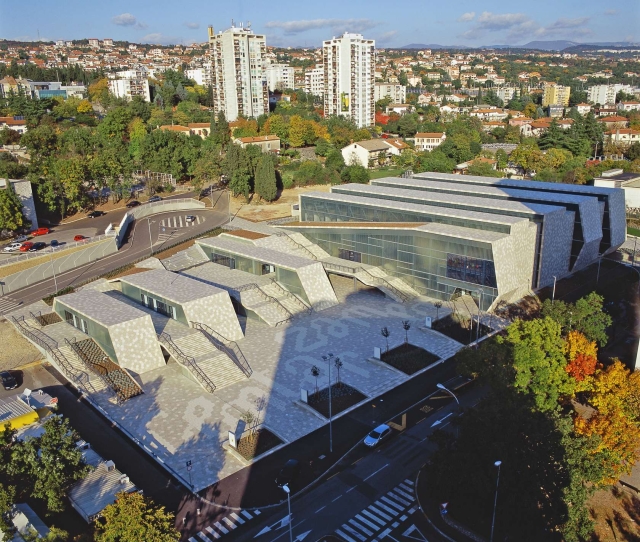 Novi Zamet Centar u hrvatskom gradu Rijeci je gradski trg preliven sa nizom talasastih zgrada ispresecanih sa zelenim krovovima. Arhitektonski biro 3LHD je projektovao kompleks kako bi se omogućio potpuni pešački pristup javnim prostorima bez preplavljujućeg osećaja ogromne mase kompleksa u susedstvu.