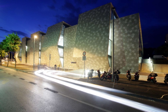 Trg je pokriven sa keramičkim pločicama, a trakasti efekat nivoa ili „pruga“ je inspirisan od strane lokalanih kamenih formacija. Eksterijer lagano teče u unutrašnjost, a talasasta masa reguliše fasadu tako da ona ne prepoterećuje trg - stvarajući na taj način prirodniji i pozivajući ambijent za okupaljanje.