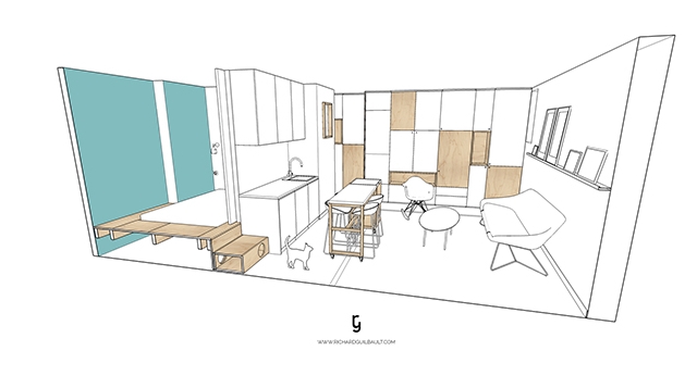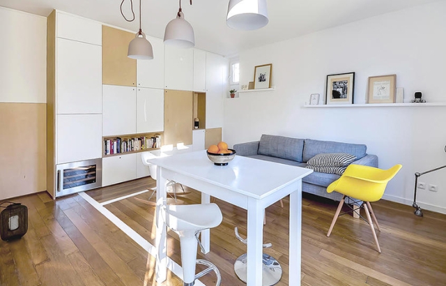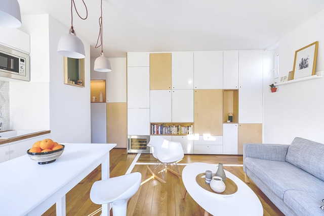 Dizajner Ričard Žibalt je angažovan da stvori svetao, otvoren prostor od jednog malenog stana u Parizu za potrebe para. Sa samo 27 metara kvadratnih površine, ovaj maleni pariski stan sada ima svetlu i prostranu atmosferu optimizovanu za moderan život sa obiljem prostora za skladištenje i pametnim rešenjima koji olakšavaju život u malim prostorima.