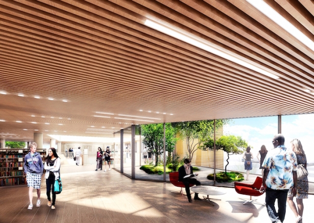 Obilati stakleni otvori pružaju predivne poglede iz biblioteke na gradski trg sa katedralom i plave unutrašnjost biblioteke sa prirodnom svetlošću. Izgradnja projekta predviđene vrednosti od 85 miliona američkih dolara se očekuje da počne krajem ove godine, a njeno otvaranje je zakazano za 2017. godinu.