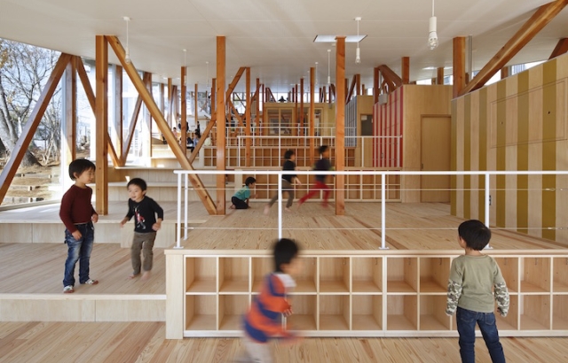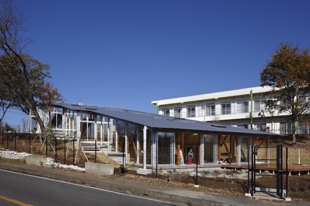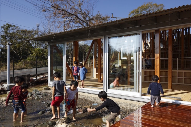 Arhitektonski biro Yamazaki Kentaro Design Workshop je projektovao nedavno izgrađeni Hakusui vrtić, drvenu strukturu obloženu staklom koja se terasasto spušta niz padinu u gradu Čibi u Japanu.