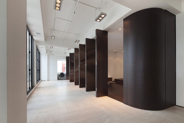 Korišćenje kliznih zidova i particija omogućava fleksibilnu podelu prostora. Najtamniji ugao prostora je zauzet sa pozornicom koja ima ugrađeno osvetljenje i skladišni prostor. Ona se otvara ka području bekstejdža koje se takođe može koristiti kao dnevni boravak ili prostor za sastanke.