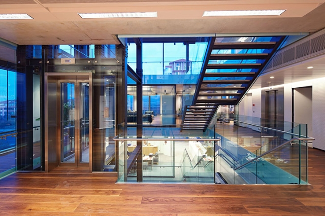 Pažljivo projektovana fasada je napravljena od dva sloja - prvi sistem od stakla bez okvira i metalnih panela, i drugi napravljen od mreže od nerđajućeg čelika. Različita transparentnost dobijena višeslojnom fasadom omogućava radnicima i posetiocima da održi vezu sa eksterijerom.