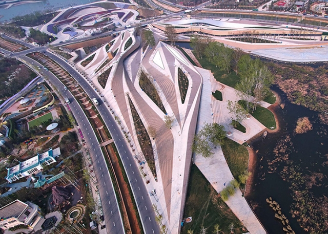 Arhitektonski biro iz Pekinga HHD_FUN je projektovao dva neverovatna objekta za Međunarodnu hortikulturnu izložbu u Kini. Prvi, Servisni centar je struktura prekrivena zelenim krovom koji se sastoji od skupa jezerca u obliku dijamanata, dok drugi objekat poseduje grupu zaobljenih paviljona koji su povezani sa obližnjim putevima i šetalištima.