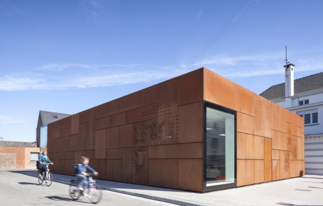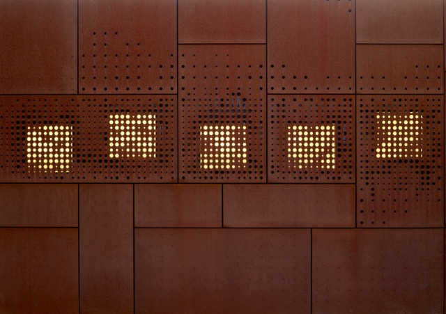 Nova zgrada je prekrivena sa zarđalim korten (Corten) čeličnim panelima koji ne zahtevaju održavanje, zgrada stvara jasan i upečatljiv kontrast nasuprot beloj omalterisanoj fasadi glavne zgrade biblioteke.