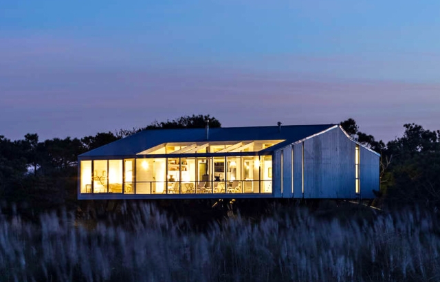 Njena duga, zastakljena struktura je rezultat prioritizacije pogleda na okolinu - Atlatnski okean i predivni travnati predeo Pampe. Pošto dom „lebdi“ iznad zemljišta, on ima minimalan uticaj na pejzaž.