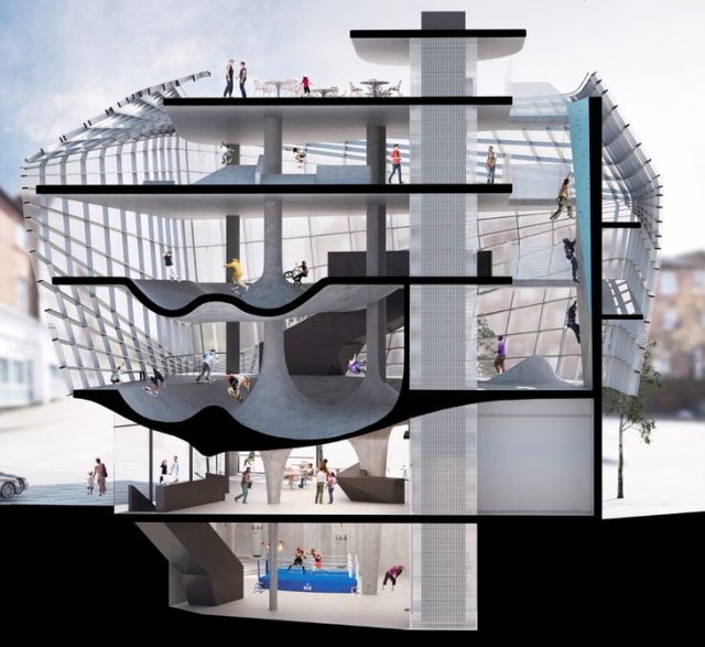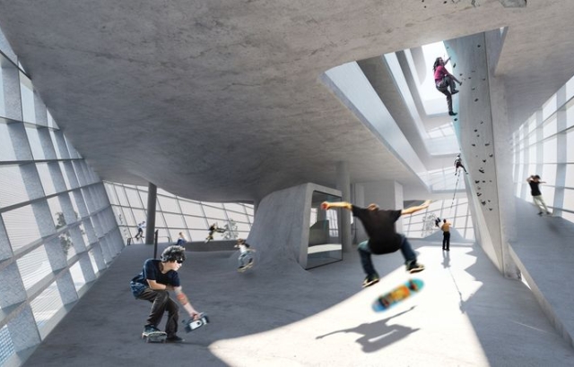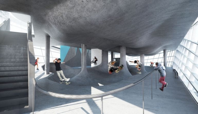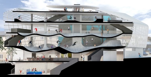 Arhitektonski biro Guy Hollaway Architects želi da uvede skejt parkove u 21. vek sa svojim projektom višespratnog skejt parka u Folkstounu u Velikoj Britaniji. Arhitekte veruju da ovo može biti prvi skejt park te vrste u svetu, a projekat takođe zamišlja gradnju biciklističkih staza, boks ringova i površina za slobodno penjanje.