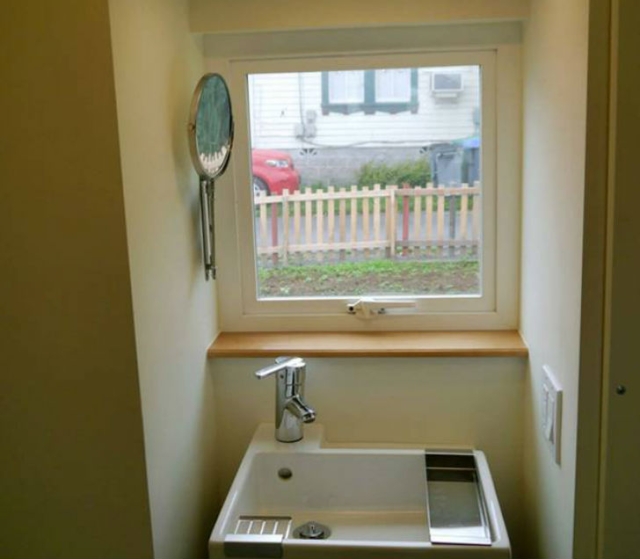 Čisti, klasični stajling i glatke površine olakšavaju kretanje u ovoj malenoj kući. Tuš je širok 80cm, što je dobra veličina za skoro svaku osobu, a iznad kupatilskog lavaboa se nalazi prozor, što umanjuje osećaj klaustrofobičnosti.
