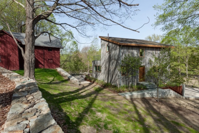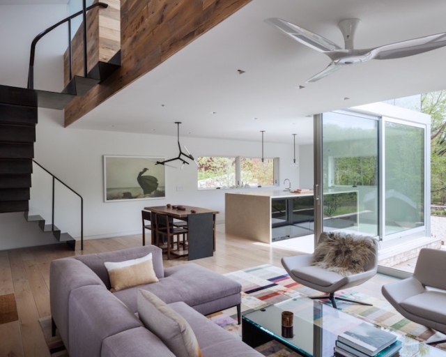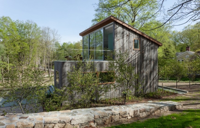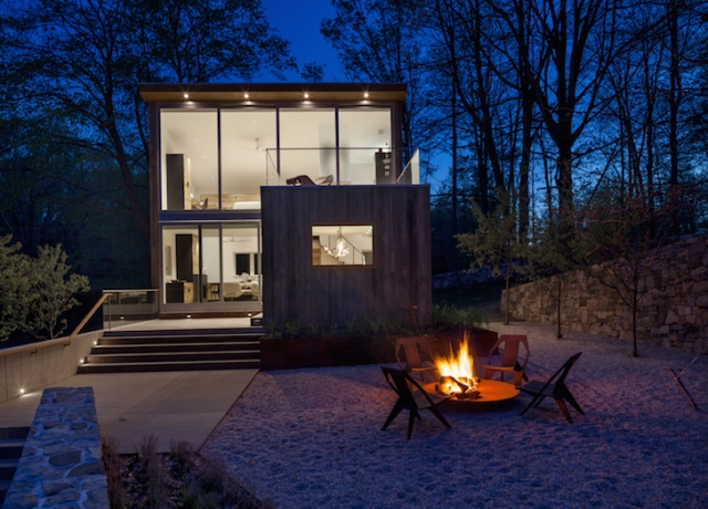 Vikendica u Garisonu, država Njujork, koristi izolovane prozore pune spratne visine i klizna vrata kako bi uvela svet prirode u svoj enterijer. Kada su vrata u prizemlju otvorena, dnevna soba postaje jedno sa spoljašnjim tremom i prirodom. Na prvom spratu se spavaća soba i kupatilo otvaraju ka terasi, odakle se pružaju prelepi pogledi na dolinu reke Hadson.