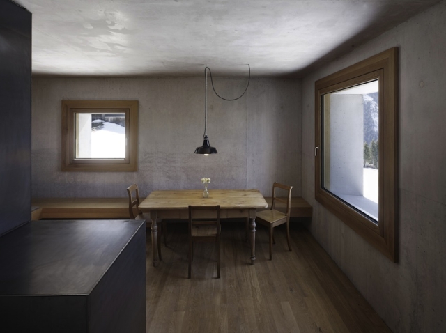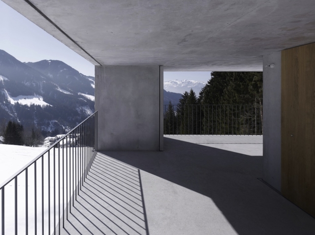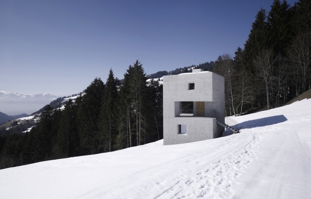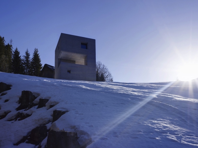 Sa svojim pepeljasto sivom bojom „Planinska koliba“ u austrijskom selu Laterns je u stalnom kontrastu sa svojim okruženjem - bujnim zelenim livadama tokom leta, kao i belim snežnim pokrivačem u zimskom periodu. Integracija spoljašnjih površina koje je investitor zahtevao je neka vrsta smicalice.