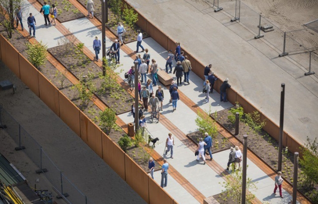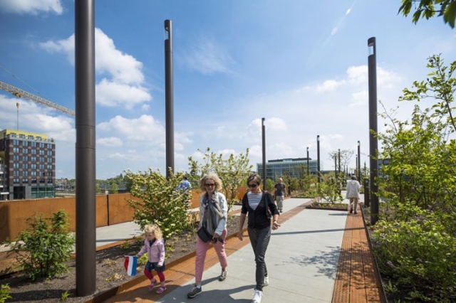 Cvetne leje i kontejneri sa drvećem su organizovni u tri zone - bliže gradskom centru, most će imati nisko rastinje i pojedinačno drveće. Tamo gde most prelazi preko pruge postojaće samo niske biljke, kako se ne bi omelo sagledavanje okolnog prostora. Prema naselju Paleiskvartier pojaviće se okruženje nalik šumi sa klupama.