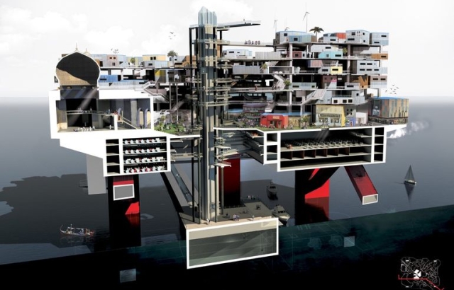 Uzimajući u obzir da će porast nivoa mora izazvan klimatskim promenama na kraju dovesti do gubitka niske ostrvske države Maldiva, student arhitekture Majank Thamala je osmislio koncept preseljavanja celokupnog stanovništva te zemlje na postojeće naftne platforme.
