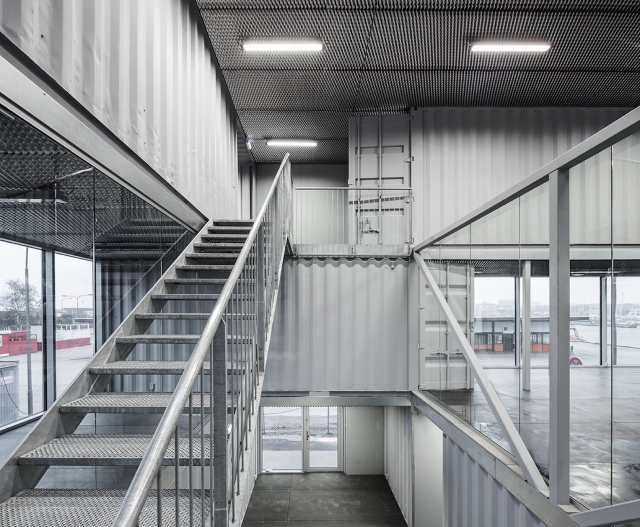Iako transportni kontejneri imaju udubljenja i oštećene na sebi zbog korišćenja od 14 godina na moru, arhitekte su odlučile da ostave ove znake rabljenja - kao i originalne podove i valovite površine - netaknute kako bi odali počast industrijskoj prošlosti kontejnera. Kontejneri su ofarbani u mat sivu boju i obloženi sa visoko izolovanim fasadnim panelima.