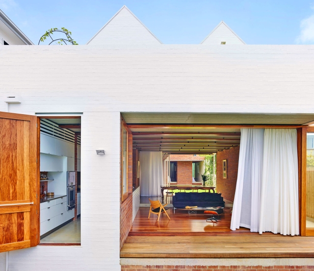 Cigla i beton formiraju osnovu i konstrukciju kuće, dok netretirano drvo oblaže unutrašnje zidove i podove. Veliki prozori i otvori punih spratnih visina omogućavaju pasivno hlađenje kuće.