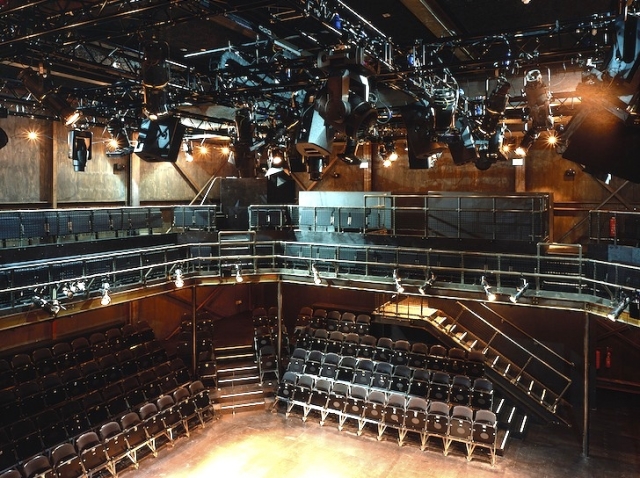 Dobro promišljena unutrašnjost je opremljena sa prethodno korišćenim sedištima i završena sa elementima od grubog čelika i šperploče, što joj daje industrijski karakter. I najbolje od svega, kada se renoviranje originalnog pozorišta završi, ova celokupna zgrada se može demontirati i ponovo koristiti na drugim mestima.