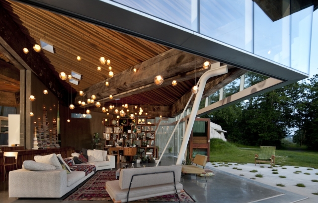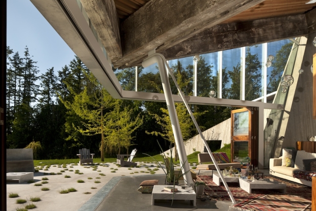 Sam dizajn kuće je započeo od polazne tačke korišćenja greda od duglazije starih sto godina koje su dobijene iz niza porušenih skladišta. Ove grede su korišćene za pravljenje trouglaste ramovske konstrukcije, a sama konstrukcija je korišćena za stvaranje krova koji deluje kao sekundarni veštački pejzaž, sa kojim je arhitekta prekrio blagu padinu parcele.