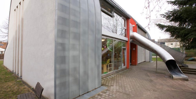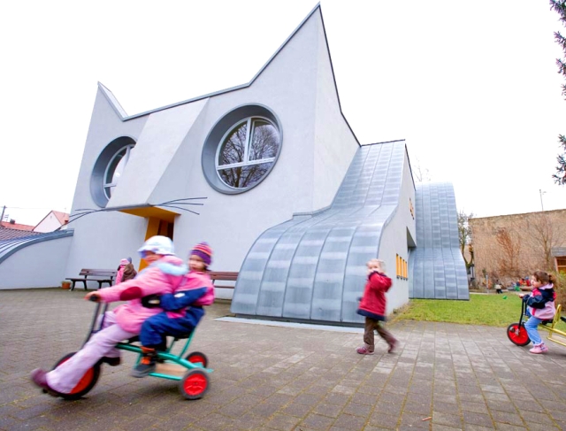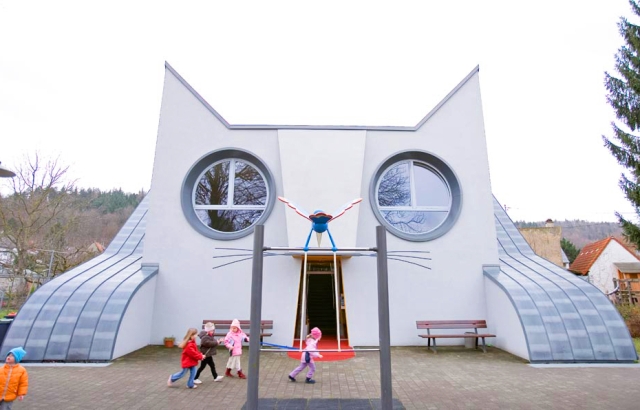 Slatko obdanište u obliku mačke nosi ime „Kindergarten Die Katzie“ i smešta stotine dece koja svaki dan ulaze u njega kroz usta mačke, imaju časove u njenom stomaku i izlaze iz obdaništa kroz mačkin rep ili spuštanjem niz srebrni tobogan smešten na leđima.