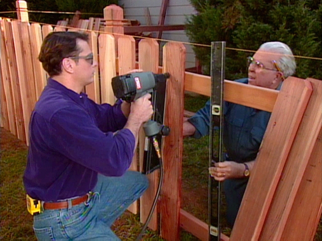 U zavisnosti od stila vaše ograde, letvice mogu biti razdvojene ili zbijene zajedno. Ukoliko su letvice razdvojene, isecite komad drveta sa širinom željenog razdvajanja. Koristite taj komad kao vodič za postavku ravnomerno razdvojenih letvica. Pored toga, dobro je i postaviti konopac koji će se protezati od stuba do stuba i koji će označavati željenu visinu letvi.