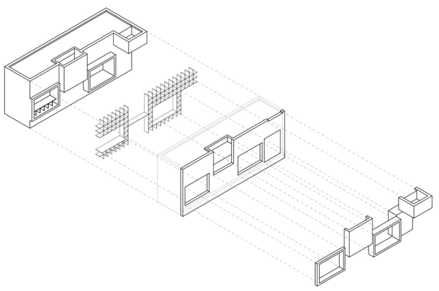 Zgrada je zamišljena kao betonska kutija sa velikim prozorima i isturenom nadstrešnicom koja je orijentisana ka moru. Prema novom zakonu, konzole pola metara dugačke se ne računaju u površinu objekta, što je razlog zašto su arhitekte stvorile velike erkere koje pružaju dodatni prostor za krevet, sofu u niši i kuhinju. Kupatilo će biti smešteno u jednom od uglova, dok će prostor iznad stola biti korišćen za krevet na sprat.