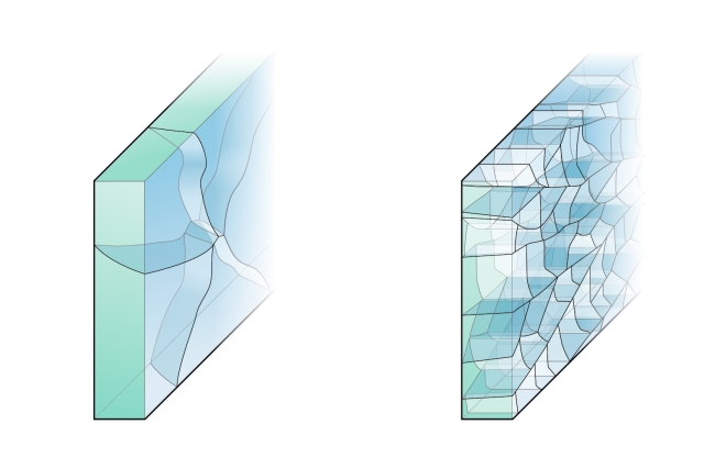 Zbog napretka u tehnologiji ekstruzije tankih filmova (prevlaka) kao što je laminacija mikro sloja i fino metalno taloženje u filmovima, moguće je premostiti međuprostor (malih deformiteta) performansi stakla, odnosno male otpornosti na udar i kontrolu energije. Neki od filmova koji su dostupni na tržištu zaista mogu ublažiti povrede koje se mogu desiti zbog komada stakla koji putuju velikom brzinom.