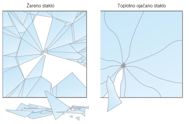 Termički obrađeno staklo je potrebno onda kada je dodatna snaga potrebna zbog termalnih rizika, prekomernog opterećenja vetra i strukturalnih opterećenja. Međutim, ovo staklo nije priznato kao bezbedan materijal za zastakljivanje, jer ima obrazac lomljenja sličan žarenom staklu.