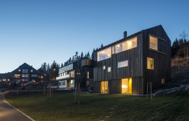 Drvetom obložena kuća Linebo je delo arhitektonskog biroa Schjelderup Trondahl Arkitekter koje nadgleda surovi norveški pejzaž nedaleko od Osla. Smeštena na vrhu brda na ivici grada, trospratna kuća je smeštena u padinu brda, sa zemljom koja deluje kao izolator i noseći element. Sa velikim brojem prozora različitih veličina na fasadi, kuća Linebo je projektovana tako da pruži različita stambena iskustva i pruži poglede na okolinu.