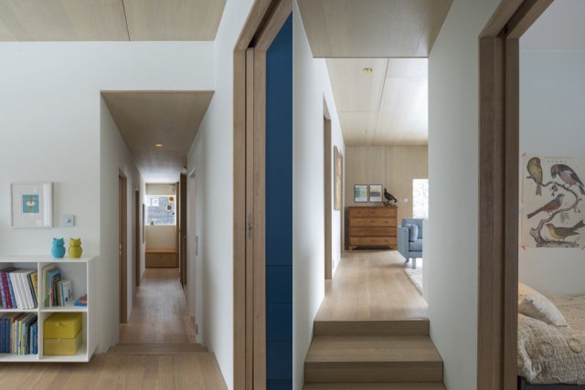 Pošto je područje gusto izgrađeno sa susednim kućama, arhitekte su smestile glavne stambene oblasti na gornja dva nivoa kuće, dajući porodici više privatnosti. Svaka soba je jedinstveno definisana sa pogledom koju pruža, od susednih kuća do udaljenih predela.