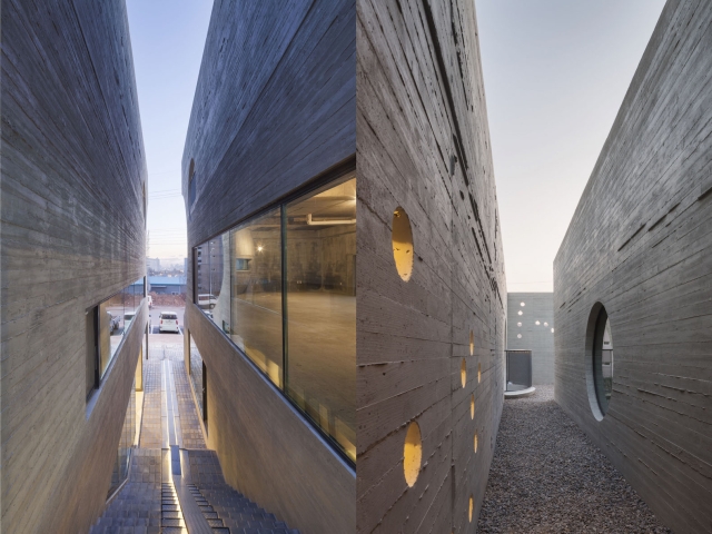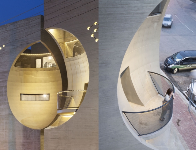 Tema meseca je nastavljena i u enterijeru sa kružnim prozorima, balkonima u obliku polumeseca, zasvođenim plafonima, i performacijama u obliku sazvežđa. Minimalistički zidovi su napravljeni od natur armiranog betona i cementnih cigli.