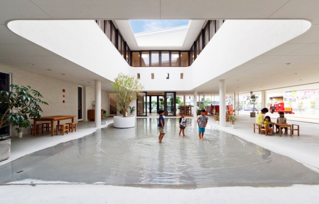 Smešteno u gradu Kumamotou, obdanište Dai-iči Jočien je inovativna arhitektura sa otvorenim dvorištem koje akumulira kišnicu kako bi se formirala velika lokva na podu. Tokom suvih dana, prostor se koristi za igre sa loptom, pa bez obzira da li pada kiša ili sija sunce, ovi klinci će se igrati.